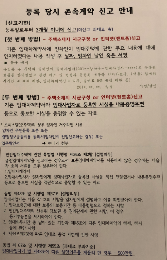 - 첫 번째는 임대사업자등록확인서를 서로 만나서 작성하는 방법, 두 번째는 임대사업자 등록사실을 내용증명 '등'으로 통보사실을 객관적 증명하는 자료