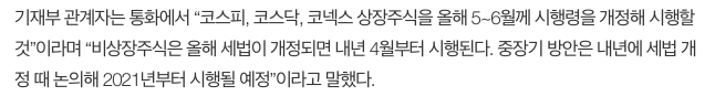- 기사 발췌에 따르면 4월 내에 코넥스 패스트트랙에 대한 완화된 조건 공개